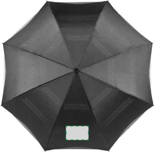 Parapluie réversible avec ouverture automatique en polyester pongée 190 T, mât en métal, baleines en fibre de verre et manche en plastique. Toile extérieure noire.