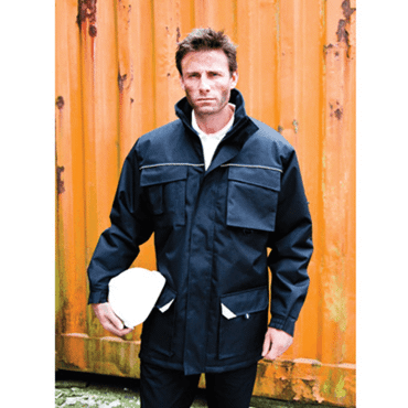 320 g/m² Ext: 100% polyester oxford avec enduit PVC Doublure: 100% polyester Taffeta 190T damassée en losanges Rembourrage: 100% polyester (160 g/m²) Capuche dissimulée avec cordon de serrage Doublure du col montant en micropolaire douce Fermeture à glissière avec taquets interchangeables Attache, diverses poches, Anneau en D Poignets élastiqués réglables par fermeture auto-agrippante Passepoil et détail sur le rabat des poches réfléchissants Coutures soudées (waterproof 3.000 mm) Convient à la broderie.