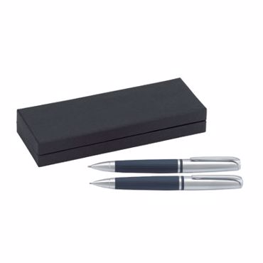 Parure de stylos EDITOR Parure de 2 stylos bille et portemines en qualité métal satiné et plastique. Coffret cadeau. Couleur écriture: Bille bleue.