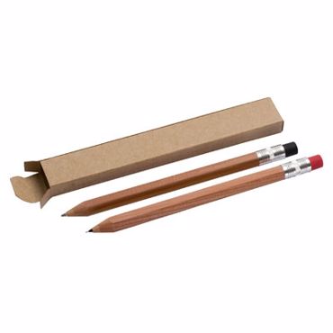 Parure écriture écologique. Offrez en écolo. Avec cette parure, marquez la différence. L' inhabituel avec ces stylos, c' est qu' ils ressemblent à des crayons à papier, mais sont en réalité des stylos à pression à encre noire. Un porte-mine avec gomme à radier. Les 2 dans un coffret en carton écolo. Le marquage vous est proposé sur la partie supérieure des stylos.