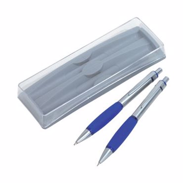 Parure stylo bille porte mines personnalisé. Set d´écriture ""Penfan"" : comprend un stylo (encre noire) et crayon à papier, grips gomme, dans un étui avec un couvercle transparent.