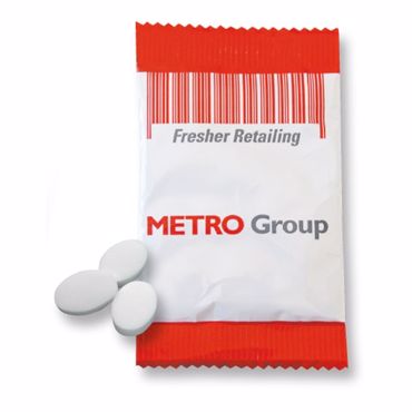Pastilles à la menthe, sans sucre, ovales 19 x 13 mm en sachet de papier blanc ou sous cellophane luisant blanc