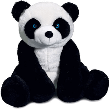 Peluche panda.**Hauteur assis: 30cm.**Yeux en plastique.**Nez bordé.**Tee shirt: taille XL.**Doming: taille M.**