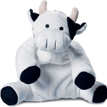 Peluche vache.**Longueur: 26cm.**Yeux brodés.**Nez bordé.**Peluche avec coussin à grains (coussin non inclus).**Echarpe taille: M.**Bandana: taille S.**Doming: taille S.**