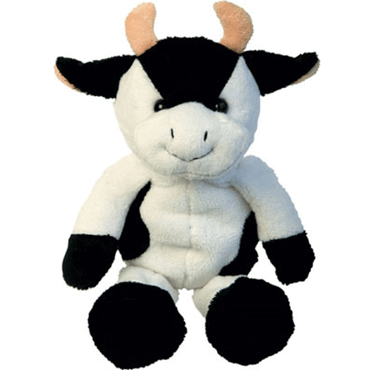 Peluche vache.**Hauteur assis: 15cm.**Hauteur 23cm.**Yeux en plastique.**Nez bordé.**Accessoires de personnalisation: taille S.**