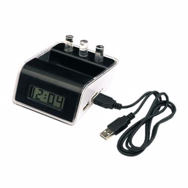 Horloge à eau "Eco Time" , fonctionne sans piles : écran LCD, affichage du jour, du mois, de l´heure, 3 cartouches à eau dévissables, 4 ports USB (câble inclus, env. 107 cm)