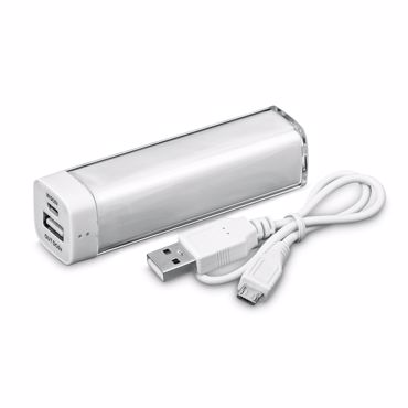 Batterie nomade en plastique avec capacité 2 200 mAh. Approprié pour le rechargement des smart phones, iPhones et tablettes, USB/Micro USB câble est inclu. 90 x 24 x 24 mm