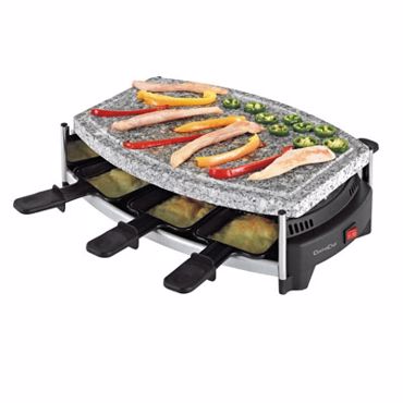 , set à raclette/pierre à grill 6 per, plateau granite, livré avec 6 caquelons.