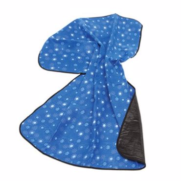 Couverture de pique-Nique "Floral" : Dessus en polaire et dessous en PVC, fournie dans un sac avec bandoulière réglable, poignée et fermeture velcro