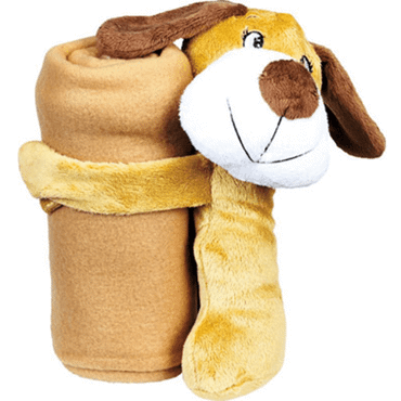 Peluche chien avec plaid en fleece (110 x 80 cm).