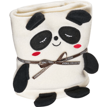 Le panda en peluche se laisse déroulé en une couverture polaire (60 x 90 cm) très douce pour les enfants.