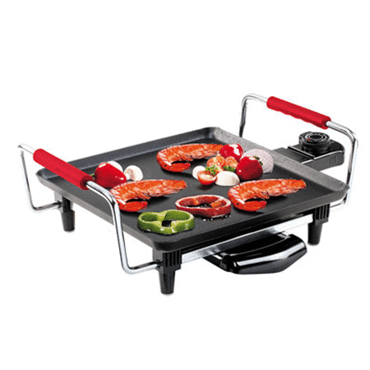 Plancha Teppan Yaki, gril électrique, surface de cuisson 26 x 26 cm, système de récupération des graisses, poignées isolantes, thermostat réglable avec témoin de chauffe lumineux, nettoyage facile, élément chauffant amovible, 4 pieds antidérapants