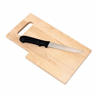 Planche à découper en bois ""Early Morning"" : avec couteau intégré à la planche dans une boite cadeau emballage cadeau Bois / INOX .