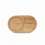 Plateau de fromage. Bambou et acier inoxydable. Avec 3 ustensiles inclus. Livré dans boîte kraft Boîte carton