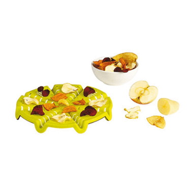 Plateau en silicone pour cuire vos chips de légumes et fruits fait maison en quelques minutes, couper en fines tranches, placer 3 à 5 minutes au micro-ondes à puissance maximum et dégustez