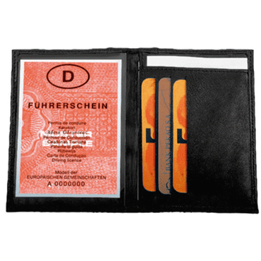 Poche permis de conduire en cuir de chêvre avec des subdivisions et équipement importantes.
