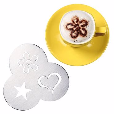 Pochoir à capuccino. Décorez votre cappuccino avec une étoile, un couer ou une fleur. Fabriqué en acier inoxydable.