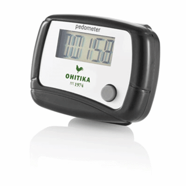Podomètre simple fonction, boîtier en ABS noir façade argentée.