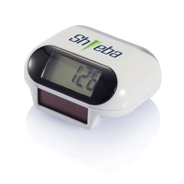Boîtier ABS avec 3 boutons et clip ceinture, panneau solaire et écran LCD. Podomètre, mesure des calories brulées et de distance parcourue en Miles/Kilomètres. Pile comprise.