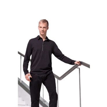 POLO COTON/ELASTHANNE MANCHES LONGUES - 93% coton, 7% élasthanne. Patte de boutonnage 3 boutons ton sur ton. Mêlant des fils de coton très fins et de l'élasthanne, voici une maille extrêmement confortable, s'adaptant à la forme et au mouvement du corps. Le traitement aux enzymes lui offre en outre un aspect soyeux et lui confère une douceur unique et un effet anti - pilling.