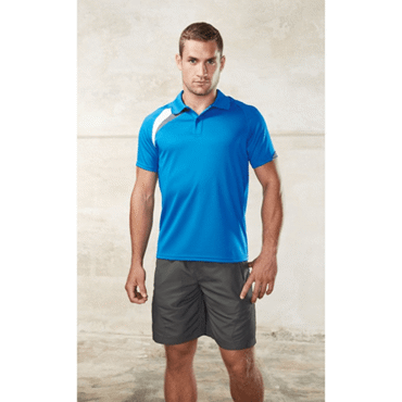 100% polyester. Tissu à séchage rapide. Empiècements contrastés. Col bord-côte 1x1 et 2 boutons ton sur ton. Finition points de recouvrement sur les découpes et double aiguille au bas de vêtement et manches. Grammage du produit : 140 gr/m²