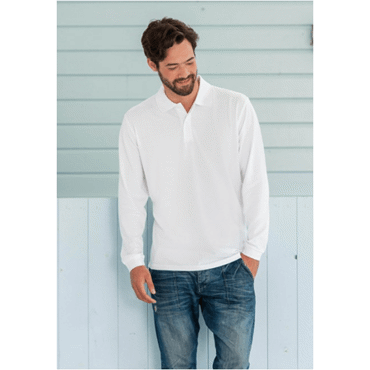 100% coton piqué ring spun. Polo manches longues avec poignets en côte 1x1. Plaquette 2 boutons ton sur ton. Ourlet double aiguille sur le bas. Fentes latérales. Grammage du produit : 195 gr/m²