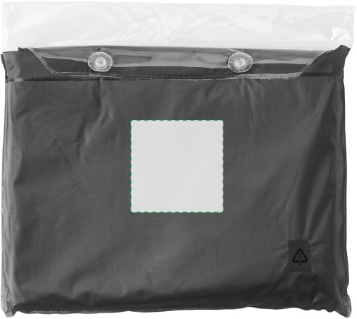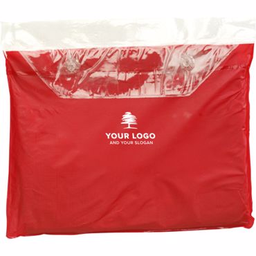 Poncho en vinyle avec capuche dans un étui avec fermeture par bouton pression.