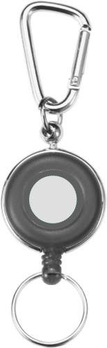 . Porte-badge en plastique avec mousqueton en aluminium.