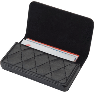 Élégant porte cartes de visite matelassé avec rabat muni d'une fermeture magnétique.