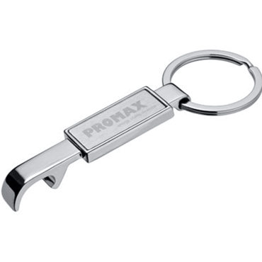 Porte-clé en métal chromé mat avec ouvre bouteille.Marquage en gravure laser. Présenté dans une boîte cadeau noire.