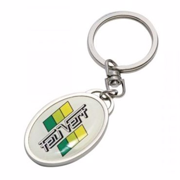 Porte-clés rotatif oval métal (anneau Ø 30 mm) avec marquage quadridôme sur 1 face (adhésif avec impression quadri + résine).