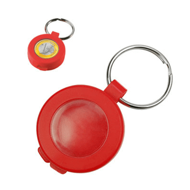 Le sûr. Porte-clés en plastique avec compartiment pour pièces de monnaie ou jeton de caddy. Anneau compris.