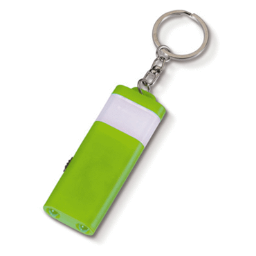 Porte-clés avec lampe. Mise en marche par bouton glissoire. 2 options d'éclairage.