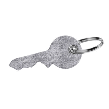Porte-clés tendance en feutre gris de 5 mm d'épaisseur. illet en aluminium et anneau pour clés en métal.