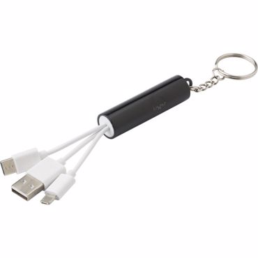 Porte-clés en ABS composé d'un câble USB, USB-C et USB Lightning qui, connecté et gravé, illumine le logo par rétroéclairage.
