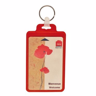 Porte clés hotel plastique. Dimensions marquage : 8 x 5 cmConditionnnement : Vrac sachet blanc, bleu, fuchsia, gris clair, jaune, bleu marine, noir, rouge, vert prairie, vert, transparent