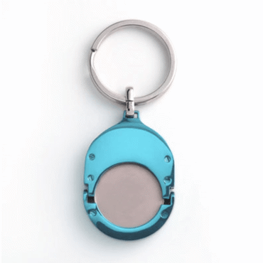 Porte clés en zamac + jeton métallique. Finition de l'ensemble nickel satin ou finition couleur vernie. Coloris disponibles : noir, marron, rouge, rose, violet, bleu marine, bleu clair, vert, jaune. Polissage miroir de toutes les faces. Prix incluant de 1 à 4 couleurs sur le recto du jeton. Délai 5 semaines.