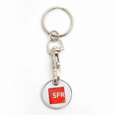 Porte clés avec mousqueton + jeton métallique. Finition de l'ensemble nickelée, polissage miroir de toutes les faces. Prix incluant un émaillage du jeton de 1 à 4 couleurs sur le recto. Diamètre du jeton 23,2 mm. Epaisseur 2,1 mm. Prix indication pour livraison 5 semaines par avion