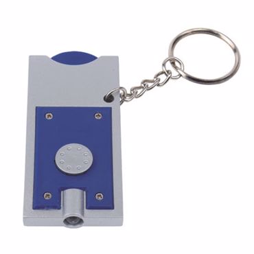 Porte clés jeton lampe. Porte clés LED ""Shopping"" : avec jeton pour chariot intégré, lumière blanche et porte clés 2 piles plates incluses .