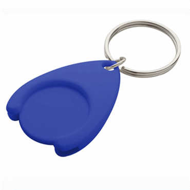 Porte-clés en métal jeton pour caddy en plastique. Format du jeton : ø24×2 mm. Correspond à une pièce de 0,50 ?.