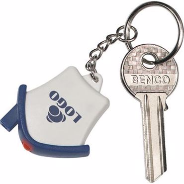 Porte clés lampe maison. Porte-clés avec petite maison en matière synthétique avec lampe à forte lumière rouge. Incl. piles bouton.