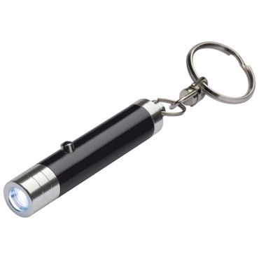 Porte clés LED design. Bien que mini elle vous éclairera efficacement et vous accompagnera partout .Vous ne serez plus jamais dans le noir. Marquage laser sur le corps de la torche. Piles boutons incluses et livré dans une boite carton cadeau. noir, rouge, bleu