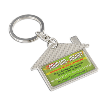 Porte-clés maison rotatif en métal, avec quadridôme devant et possibilité gravure au dos. Possibilité de gravure individuelle ou nominative, devis sur demande. Avec marquage livré en sachet individuel. Emballage : sac METAL article non renouvelé après épuisement du stock