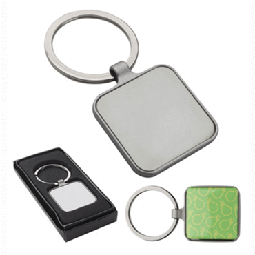 Porte-clés en métal carré avec plaques brillantes sur les deux côtés.