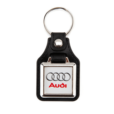Porte-clés métallique simili cuir carré