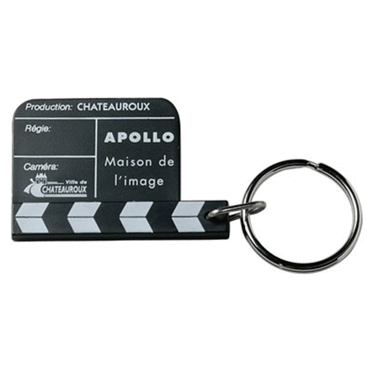 Moteur ! ... et le spectacle commence. Petit porte-clés sous forme de clap de film.