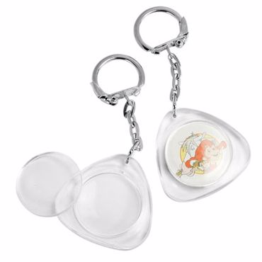 Porte clés triangle insert. Porte-clés pour l'insertion d'imprimés Frais supplementaires pour insertion d'une feuille (frais d'impression et frais supplementaires) sur demande. Couleur de base : transparent