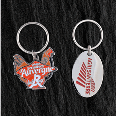 Porte clés base zamac injecté Eco. Dépose de couleurs en émail posé, format de découpe sur mesure, par défaut attache par anneau brisé rond, finition de l'ensemble nickel brillant. Prix incluant une impression du porte clés de 1 à 4 couleurs sur le recto. Diamètre 25 mm. Epaisseur 2 mm. Dimension : 30 mm