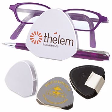 Porte lunettes voiture personnalisé Porte-lunette avec adhésif sur la base et au dos permettant de le coller sur une surface verticale ou horizontale. Livré sans stylo