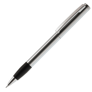 Porte mine avec mécanisme twist. Modèle Toppoint avec grip noir en caoutchouc et clip en argent. Gravure laser possible.